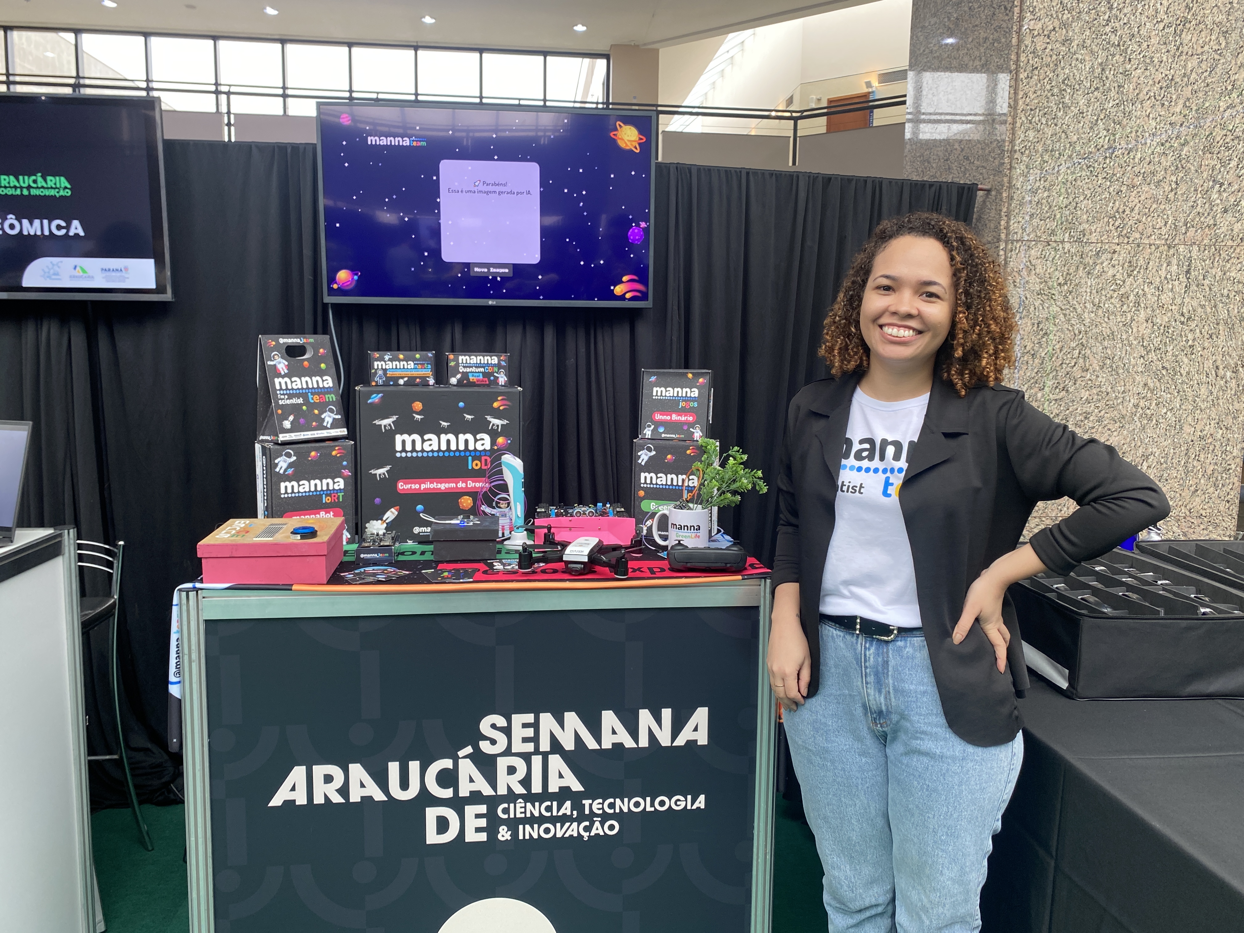 O NAPI Manna levou demonstrações de projetos ligados à internet das coisas, inteligência artificial e uso educacional de tecnologias digitais, incluindo jogos interativos que convidam o público a identificar imagens geradas por inteligência artificial.