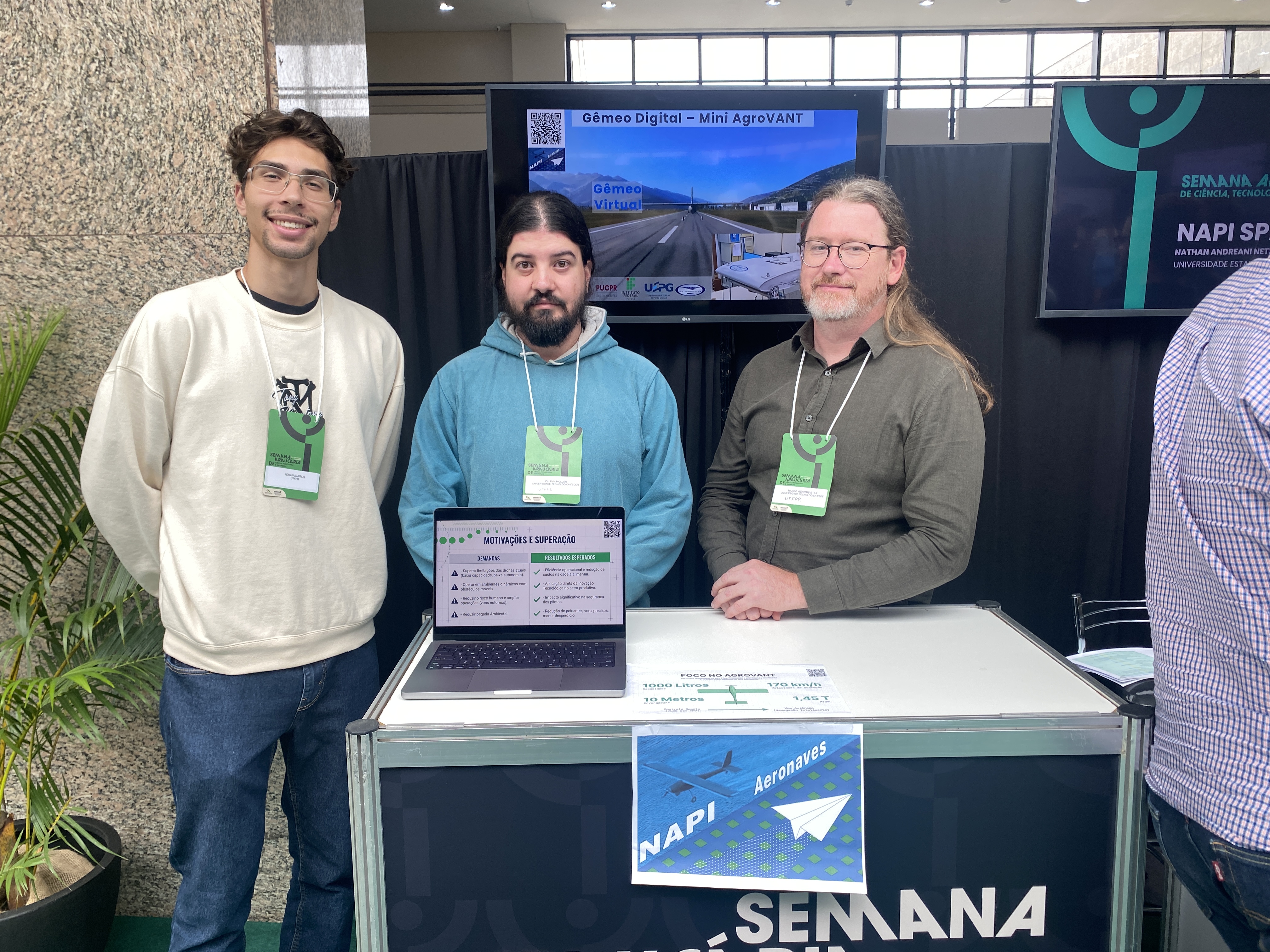 Na primeira tarde do evento, os estandes dos Novos Arranjos de Pesquisa e Inovação apresentaram resultados de projetos que integram universidades, institutos de pesquisa e setor produtivo em diferentes regiões do estado. As pessoas puderam contar com estandes dos NAPIs: Aeronaves de Pequeno Porte; Lutas Marciais;Trinacional;Educação para o Futuro; Paraná Faz Ciência; Quintas de Ciência; Sudoeste; Space; Enfezamento do Milho; Ressonância Magnética- Nuclear;Robótica;Oeste POD/Governança e Bioinovação; Erva-Mate e Fenômenos Extremos.