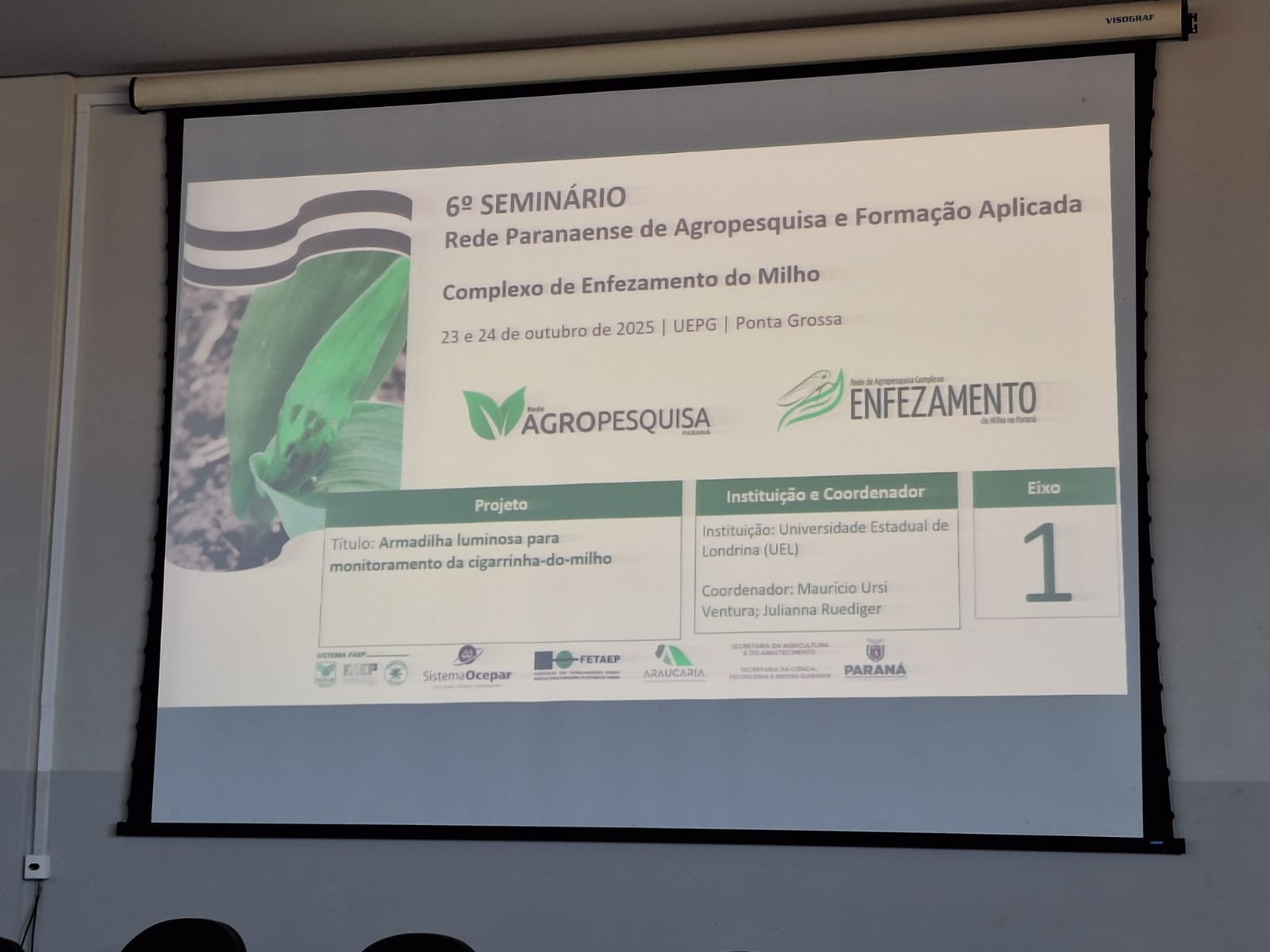 Projetos como o Monitoramento dos patógenos do CEM; Ocorrência e etiologia do CEM em plantas de milho no Paraná; Armadilha luminosa para monitoramento da cigarrinha-do- milho; Avaliações das reações de cultivares de milho; O CEM como agravante do complexo de podridão do colmo; Sanidade e composição bromatológica de milho relacionadas ao CEM; Compatibilidade e número de aplicações de inseticidas; Tecnologia de aplicação e (in)compatibilidade de inseticidas; Níveis de manejos com inseticida e fungicida em Guarapuava e Biologia e aplicação de inseticidas no manejo da cigarrinha foram apresentados no Seminário.