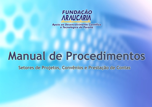 Com o objetivo de apresentar o funcionamento de cada setor da Fundação Araucária e também sanar as dúvidas mais comuns dos pesquisadores, professores, bolsistas e coordenadores, foi elaborado um manual de procedimentos. Nele, constam informações relacionadas aos setores de projetos, convênios e de prestação de contas.