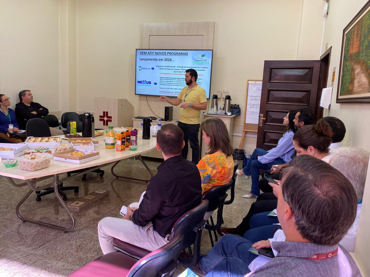 Durante o evento, o chefe do setor de Inovação da Fundação Araucária, Luis Brandt, pôde debater com gestores, pesquisadores e professores sobre novas estratégias para o fortalecimento do ecossistema de inovação em saúde.“A presença da Araucária nessas conversas é fundamental para alinhar oportunidades de financiamento e apoio a projetos que buscam modernizar o atendimento hospitalar e a pesquisa clínica”, destacou Brandt. O encontro aconteceu na Sala do Conselho de Administração (COAD) e reafirmou o compromisso do Complexo com a integração entre ensino, pesquisa e inovação tecnológica.