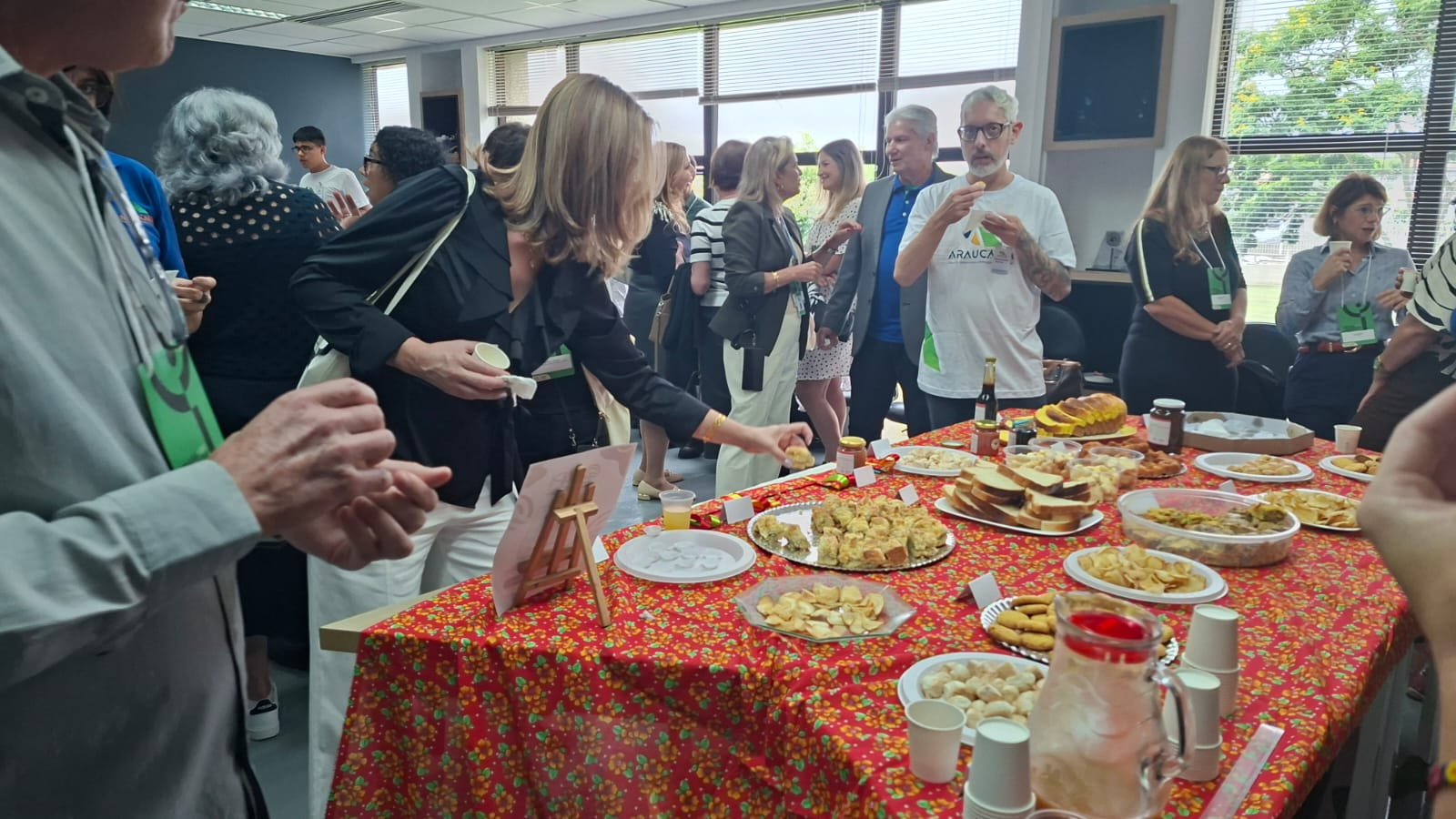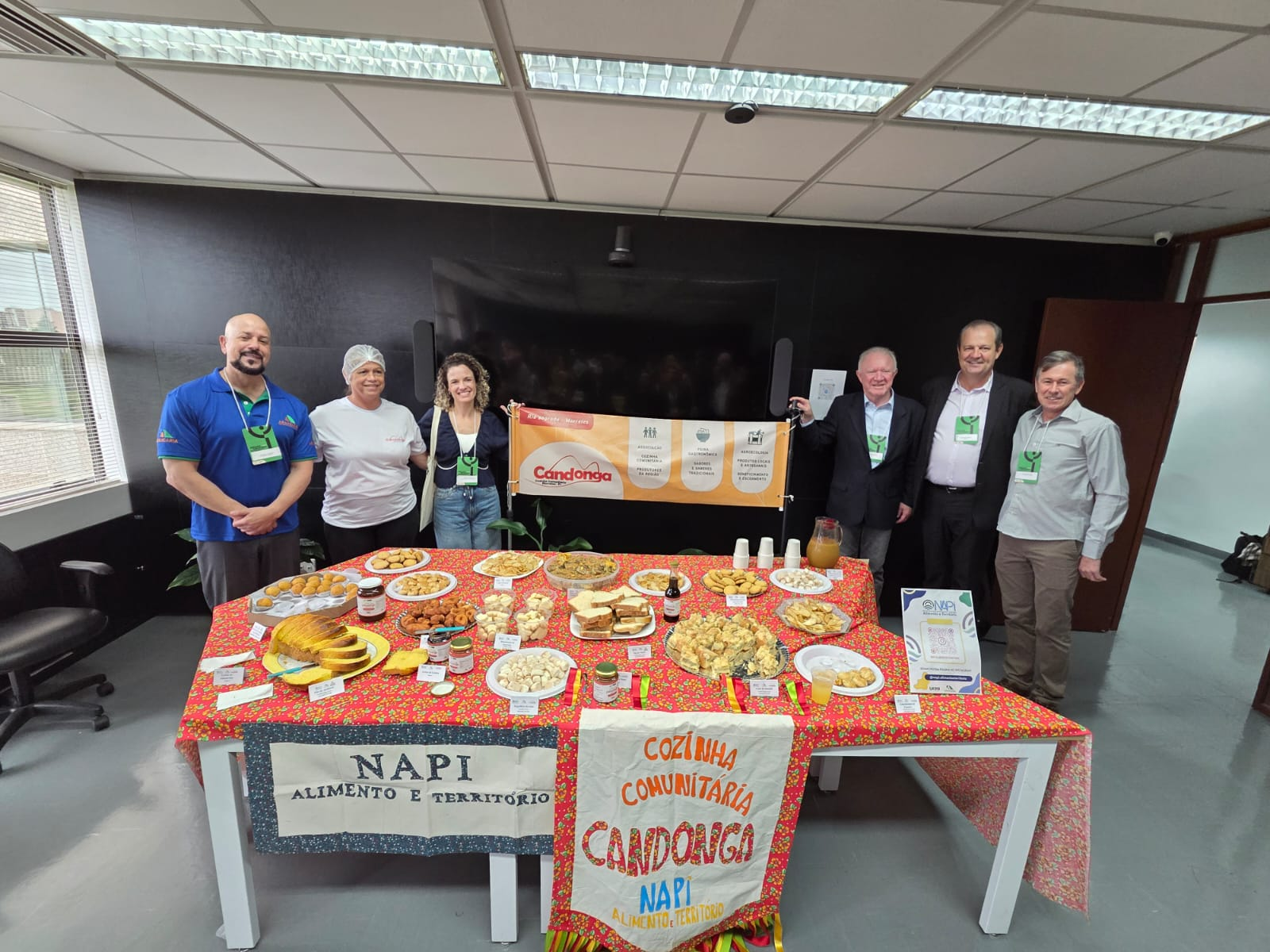 Os sabores de comunidades tradicionais do Paraná marcaram presença na Semana Araucária de Ciência, Tecnologia e Inovação. Entre os dias 10 e 12 de março, no Campus da Indústria em Curitiba, o Novo Arranjo de Pesquisa e Inovação (NAPI) Alimento e Território apresentou ao público produtos elaborados em cozinhas comunitárias apoiadas pelo Arranjo. Biscoitos, pães, geleias, salgados, chips de mandioca e até um suco de jerivá com melado de cana foram servidos no coffee break da programação.