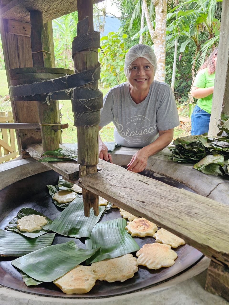 O evento teve como cenário a Farinheira da Cris, uma fábrica artesanal de farinha de mandioca centenária que pertence à família da agricultora Miriam Cristina, nativa da comunidade. Nesse ambiente carregado de história, representantes das demais comunidades integrantes do projeto - as comunidades José Lutzenberger (Antonina-PR) e Guaraguaçu (Pontal do Paraná-PR), associados da Cozinha Comunitária Candonga, a equipe do NAPI Alimento e Território e representantes da Fundação Araucária, se reuniram para uma experiência única: a produção coletiva da “Berereca”, receita tradicional do território, de origem indígena, que tem a mandioca como principal ingrediente.