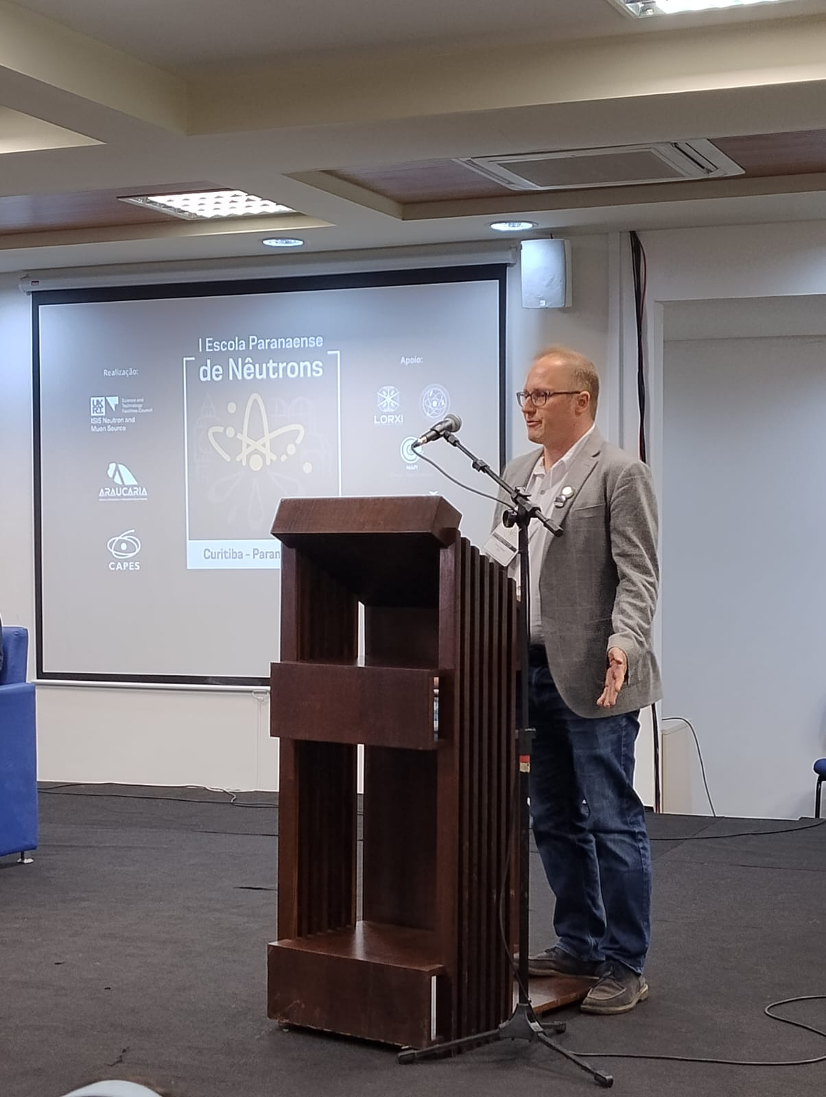 O diretor de Ciência, Tecnologia e Inovação da Fundação Araucária, Luiz Márcio Spinosa, participou da abertura do evento. A Escola de Nêutrons tem como objetivo proporcionar aos cerca de setenta participantes, uma compreensão abrangente das técnicas de nêutrons, abordando tanto os fundamentos teóricos quanto suas aplicações experimentais. A programação inclui aulas expositivas, atividades práticas e tutoriais com softwares especializados, garantindo uma formação completa e integrada nas diversas etapas do uso científico dessa metodologia.