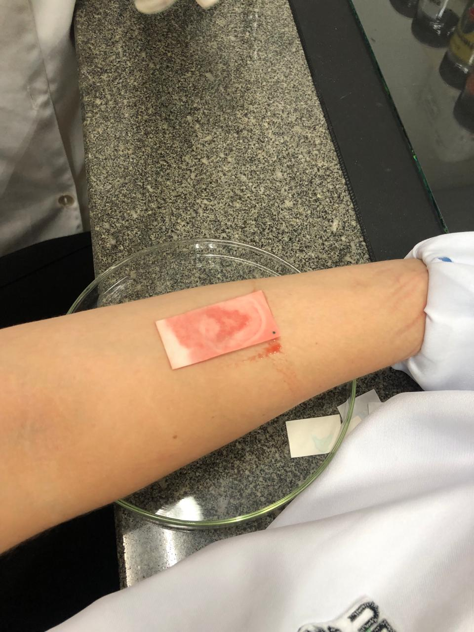 Além do curativo, a equipe também desenvolveu um kit complementar de detecção sanguínea, que inclui sistema de coleta e aplicação do material. Parte superior do formulário