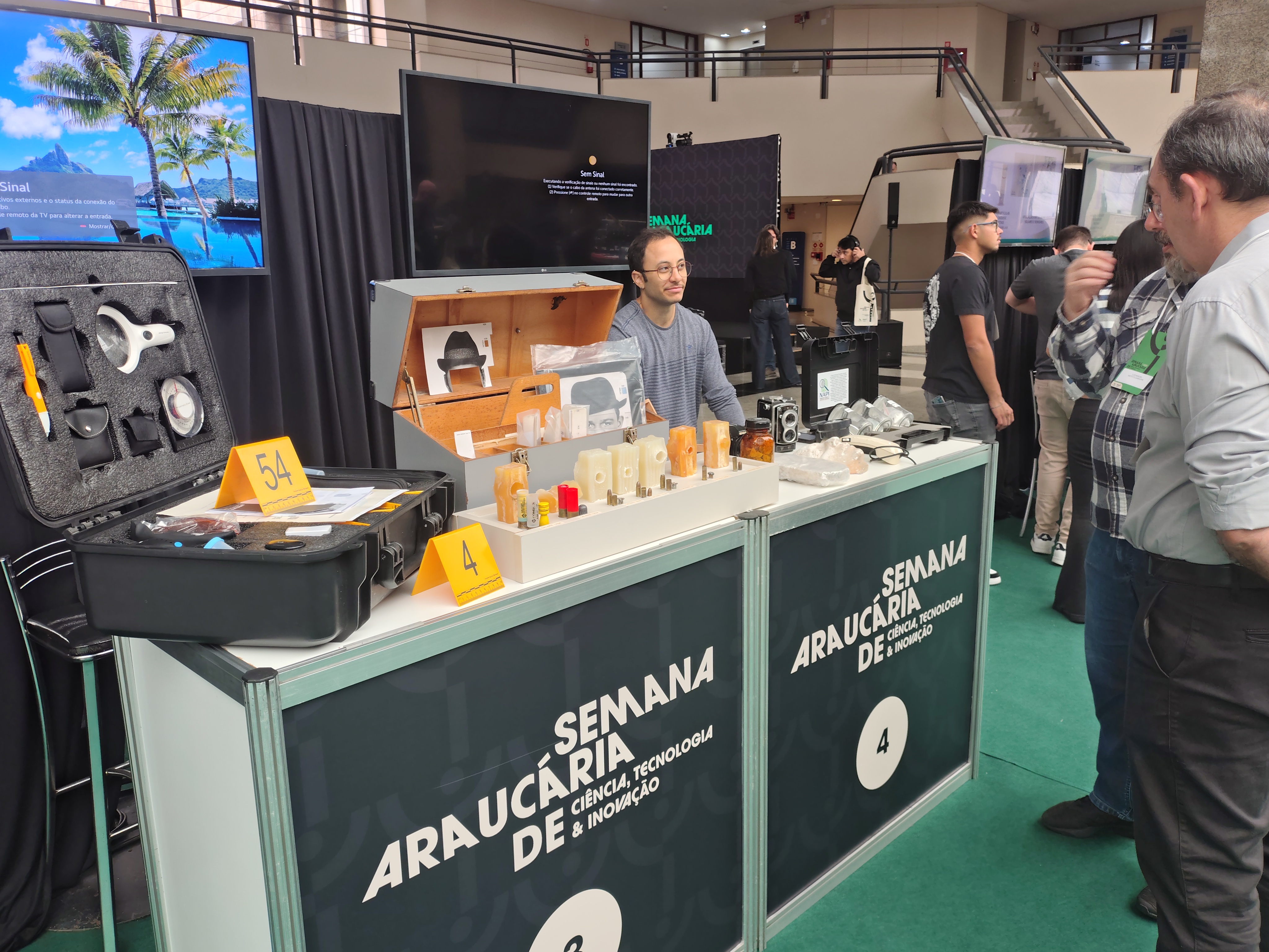 No NAPI Eletrônica Orgânica, os visitantes puderam conhecer um sensor óptico desenvolvido em parceria com a Sanepar para detectar contaminantes na água. A tecnologia utiliza luz para identificar metais pesados, como chumbo, em amostras analisadas.
