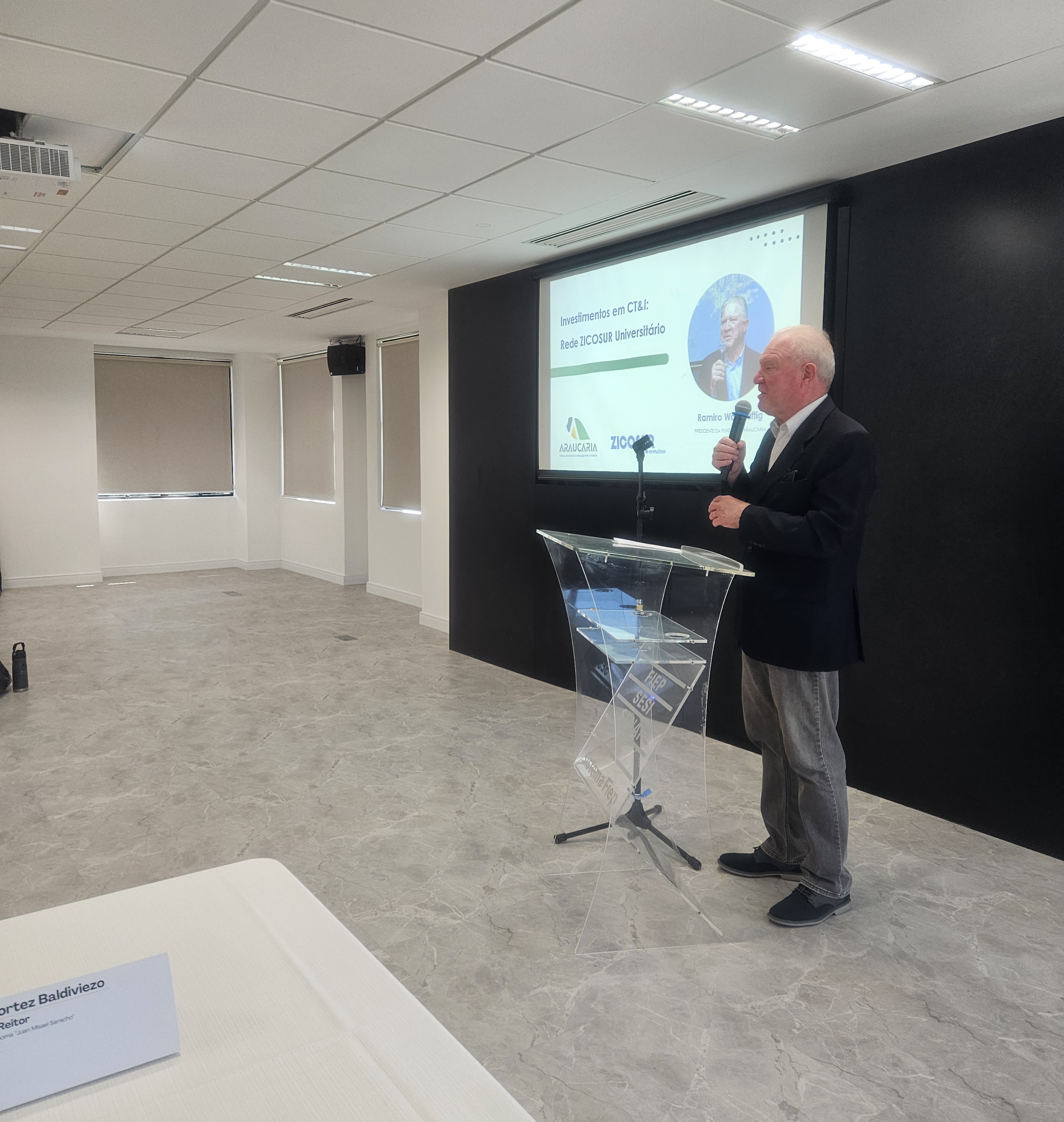 “A importância deste evento reside na nossa capacidade de unir o conhecimento produzido em nossas universidades às necessidades reais das nossas províncias e estados. Somente através dessa parceria estratégica entre governo e academia poderemos promover um desenvolvimento sustentável, tecnológico e social que realmente transforme a vida dos cidadãos da nossa Zona de Integração. Estamos aqui para converter fronteiras geográficas em pontes de cooperação e inovação”, enfatizou o presidente da Fundação Araucária e coordenador da Comissão de Ciência, Tecnologia e Inovação da Zicosur, Ramiro Wahrhaftig.